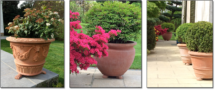 Chez certains de mes clients (ex: ci dessus  sur les photos) les poteries d'Impruneta se transmettent de génération en génération sans le moindre soucis. Normal elles sont traîtées avec attention.  Il y a des règles à respecter pour que votre vase se porte bien.